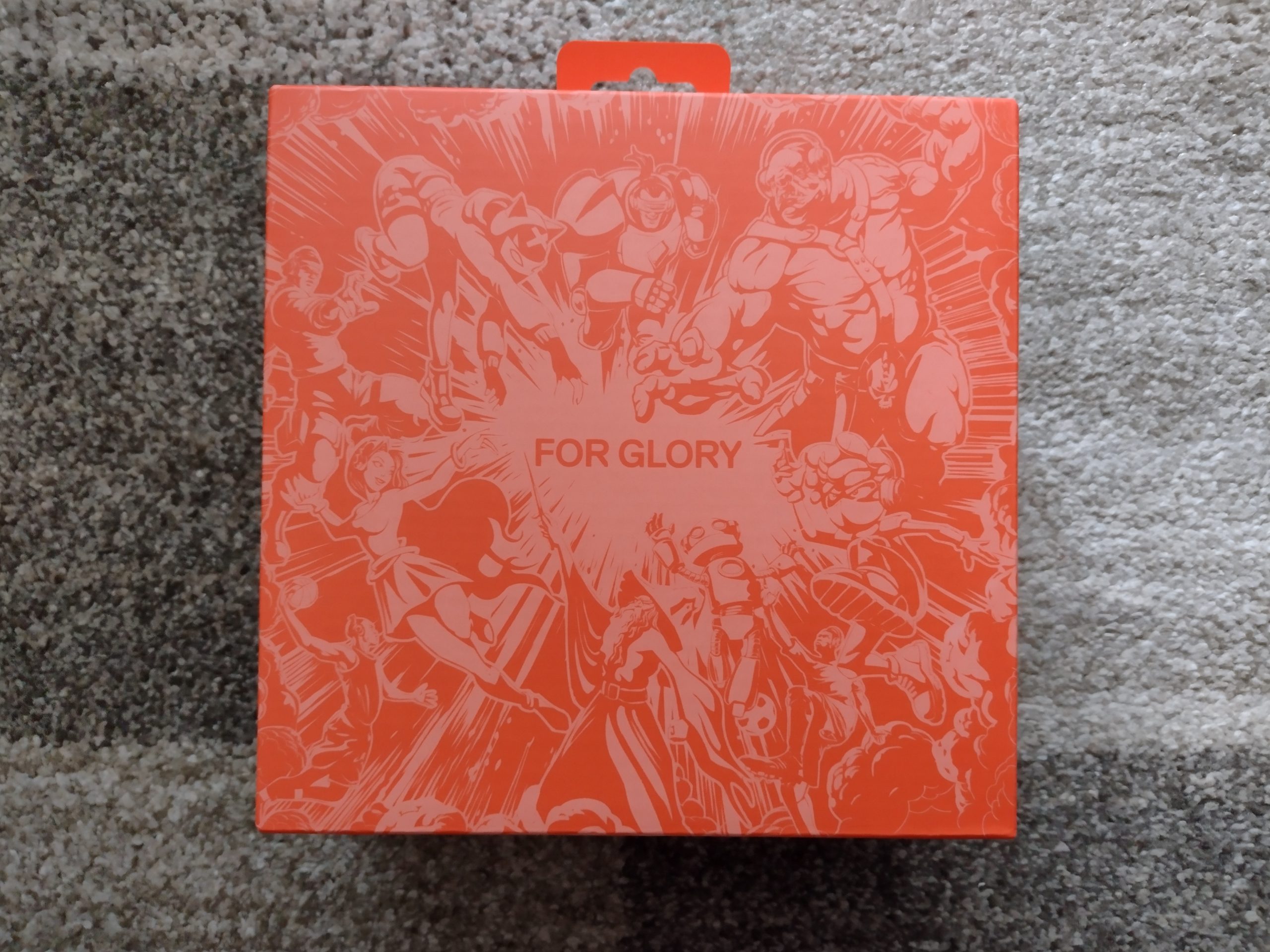 Jednak na pierwszy rzut oka nie dostrzeżemy słuchawek, no może muszle. Bardziej może się rzucić góra, a dokładnie to małe, prostokątne pudełko, na którym widnieje biały napis: “OPEN THIS – FOR GLORY”. Jego zawartość obejmuje zestaw naklejek, instrukcję oraz trzy kable: USB-C na USB-C, USB-C na jacka 3.5 mm oraz USB-A na USB-C.