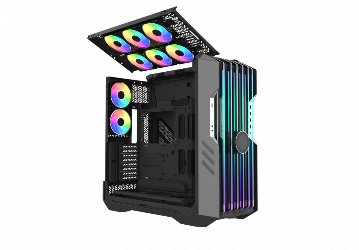 Nowa obudowa Cooler Master HAF 700 EVO została zaprojektowana przede wszystkim pod kątem optymalnego przepływu powietrza. Dzięki temu podzespoły zamontowane w jej wnętrzu mają zachowywać odpowiednią temperaturę. Producent przewidział miejsce na 18 wentylatorów 120 mm oraz chłodnice o rozmiarze do 480 mm. Spora ilość miejsca we wnętrzu umożliwia montaż największych kart graficznych oraz płyt głównych w rozmiarze od ITX do E-ATX. Modularna konstrukcja pozwala na dostosowanie rozmieszczenia poszczególnych podzespołów według własnych preferencji. Tak, dotyczy to również GPU, które możemy zamontować pionowo. To za sprawą akcesoriów, które są dołączone do zestawu.