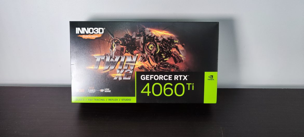 Informacje o firmie przedstawione to można przejść do głównego etapu tekstu – czyli samej recenzji karty graficznej od INNO3D. Jak już zauważyliście w moje ręce trafiła grafika z serii RTX, a dokładnie model RTX 4060 Ti. Oczywiście jest to model niereferencyjny z usprawnionym systemem chłodzenia oraz podkręconymi zegarami. Dokładnie jest to model INNO3D RTX 4060 Ti Twin X2.