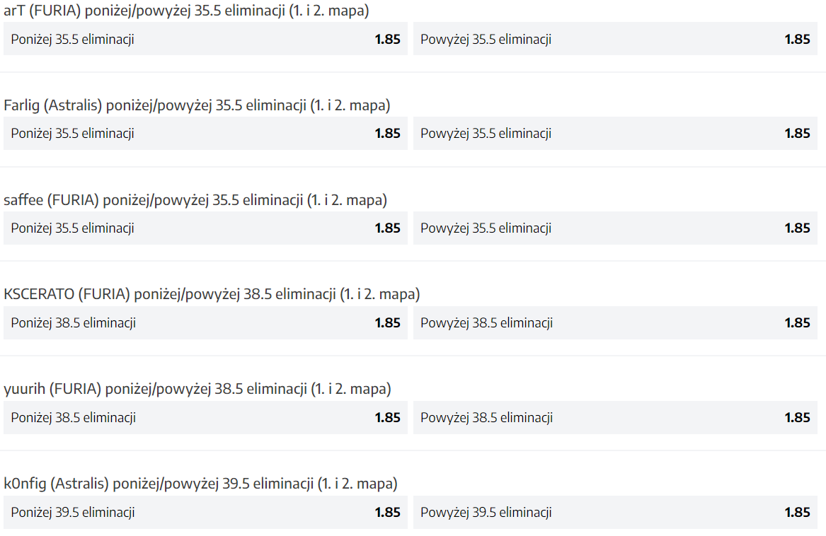 Jednocześnie rozgrywki zainaugurują ostatnie dwie drużyny, których do tej pory nie mieliśmy okazji oglądać, czyli FURIA i Astralis. Czysto teoretycznie, te zawody powinny być całkiem wyrównane, ponieważ mamy do czynienia z ósmą i dwunastą ekipą świata. W praktyce jednak wyniki z imprez, na których pojawiały się obie organizacje, były zróżnicowane. Po raz ostatni bój tych ekip mieliśmy okazję obserwować 8 kwietnia podczas piętnastego sezonu ESL Pro League. Wówczas lepsi byli Kaike “KSCEARTO” Cerato i jego kompani. Eksperci twierdzą jednak, że to Duńczycy dziś wygrają, a to za sprawą mnożnika 1.79, podczas gdy na FURIĘ mamy 1.99.