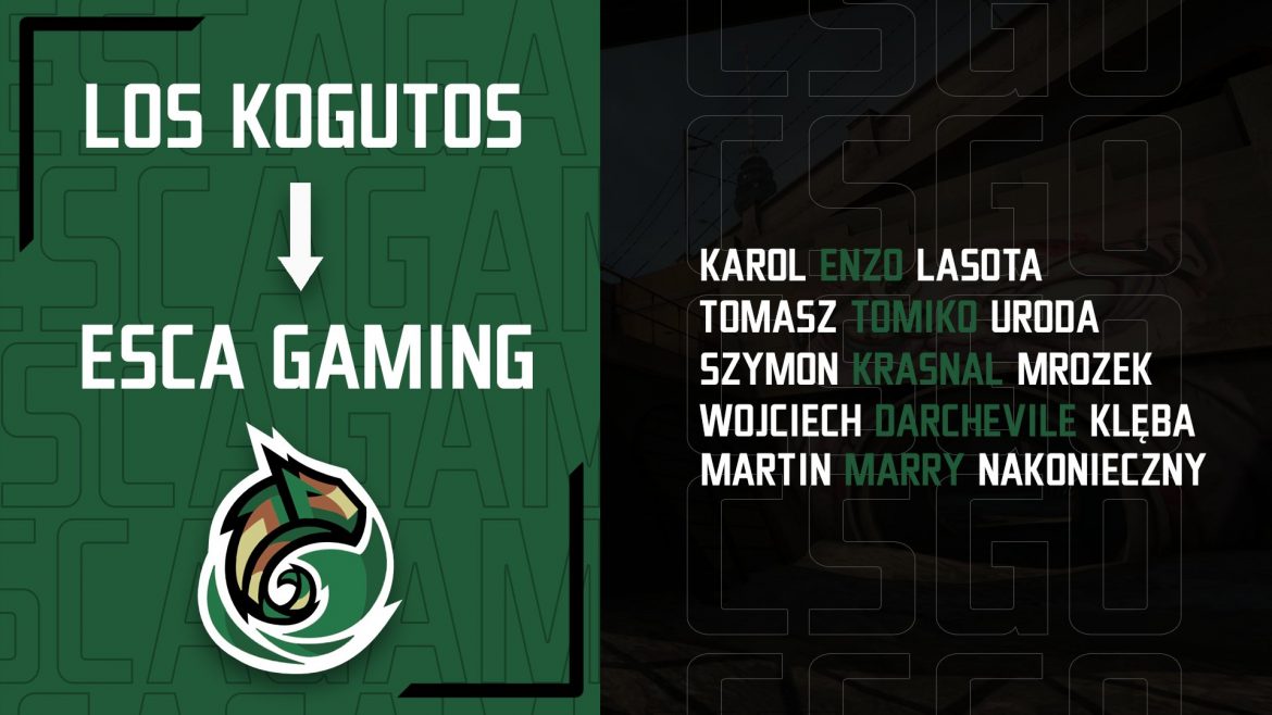 Zespół występujący pod nazwą los kogutos w końcu znalazł nowy dom. Karol „Enzo” Lasota i spółka zasilili szeregi sekcji CS:GO w Team ESCA Gaming!