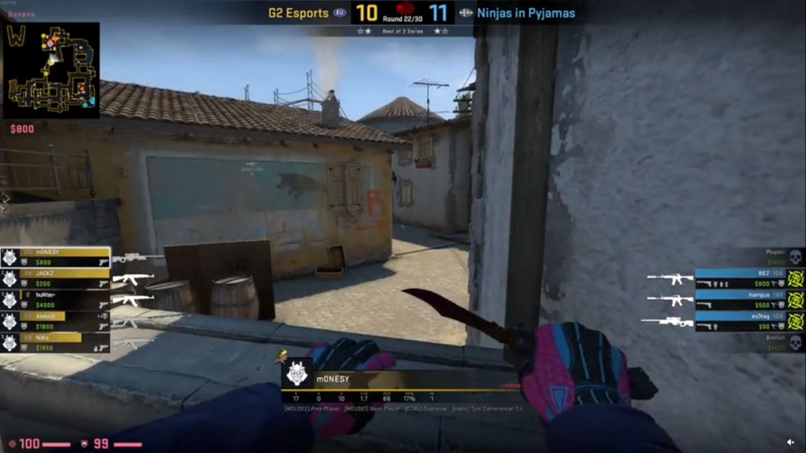 Co w takim razie teraz znalazł m0nesy? Nic związanego ze smoke’ami, ale bug jest niemniej ważny. Błąd znajduje się na Inferno na bananie. Okazuje się, że można się zablokować przy ściance na bananie tak, że atakujący widzą cały obszar, bez potrzeby podsadzania. Taki błąd musi być jak najszybciej wyeliminowany przez Valve, bo jest to zbyt ważna wada, która daje ogromną przewagę. Oczywiście korzystanie z błędów gry jest nielegalne, niemniej jednak na match makingach nie ma takiej kontroli, by karać za to zawodników. Zobaczcie sami: