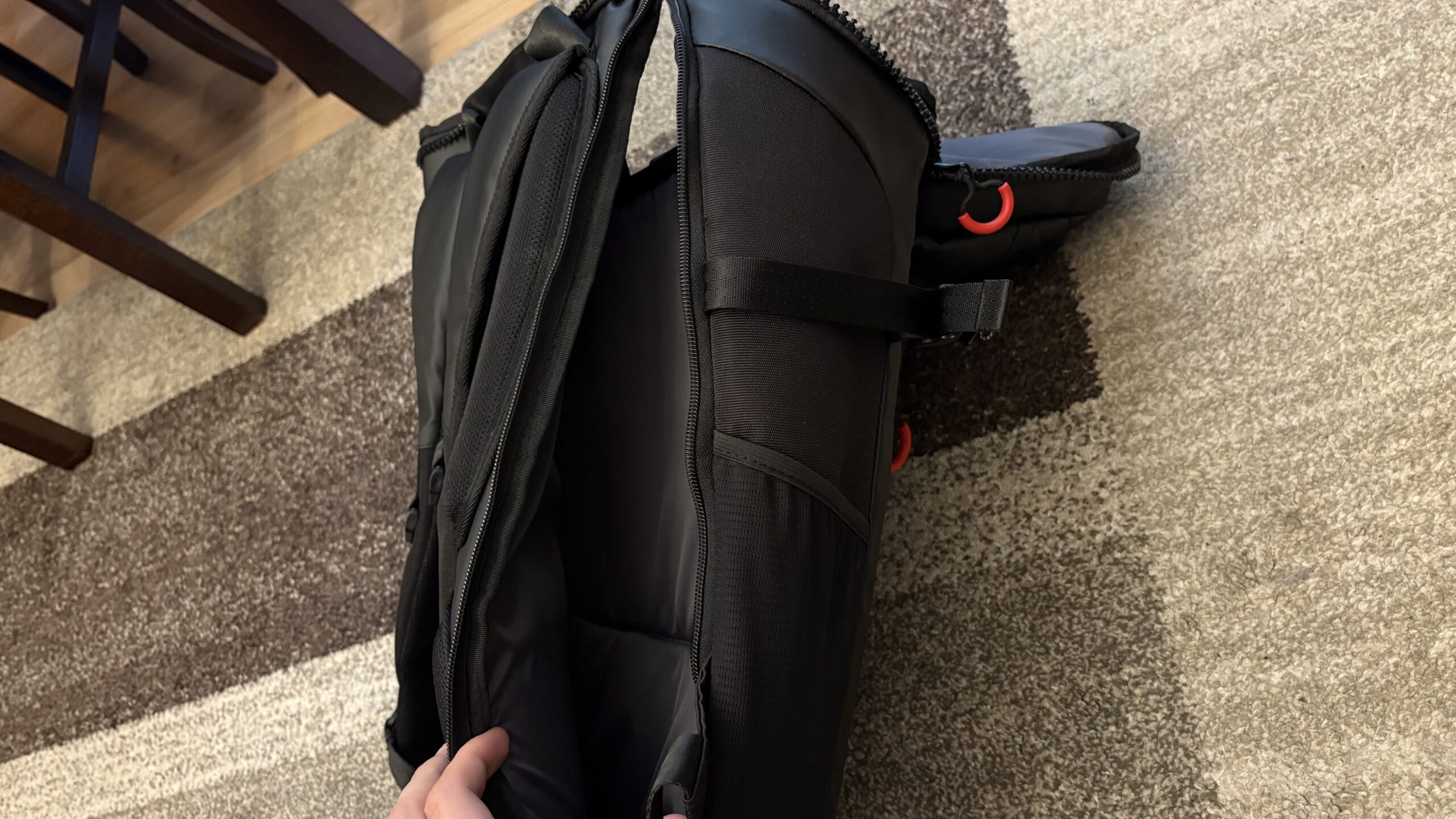 Już po dotarciu do mnie plecaka byłem zadowolony przede wszystkim z jego pojemności i głębokości, w skrócie? Pojemności. Z zewnątrz, przed zajrzeniem jeszcze do środka sprawiał wrażenie ciekawej opcji na wyjście w góry. Niewątpliwym atutem Rangera 600G jest jego bardzo duża pojemność. To plecak, który cieszy się solidną głębokością i naprawdę można do niego sporo zmieścić. Poza laptopem na spokojnie wejdą tu jeszcze dwie, jak nie trzy klawiatury. Dlatego też, jeżeli pod względem wymiarów zastanawiacie się nad ewentualnym plecakiem, który niekoniecznie ma służyć do transportu laptopa, a stanowiska, to zda on egzamin po prostu dobrze. Mnogość kieszonek z kolei powinna przełożyć się na to, że nie będziemy zmuszeni do długich poszukiwań małych rzeczy. Te dodatkowo pozwalają na rozplanowanie co i gdzie umieszczamy.