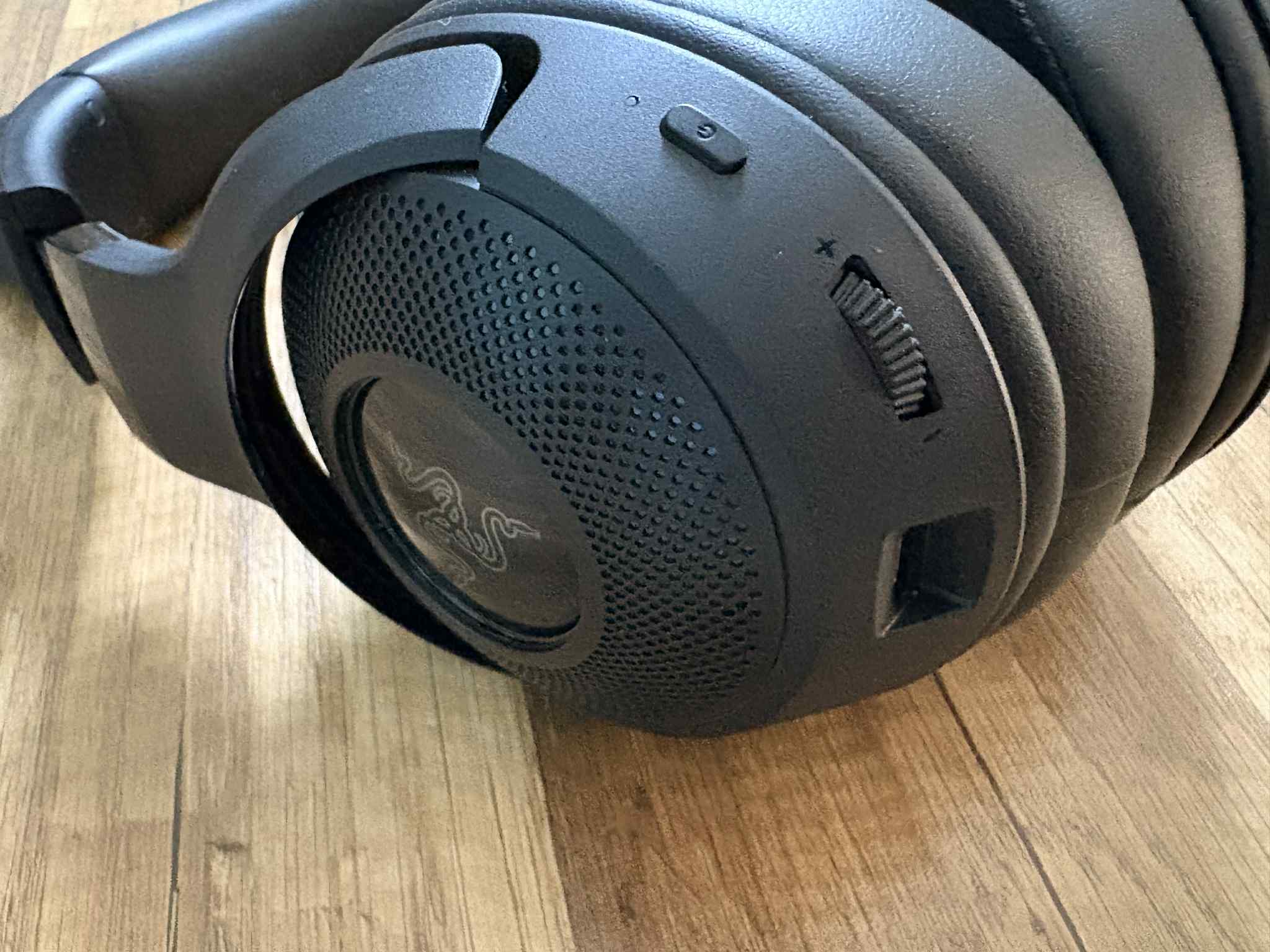 Na lewym nauszniku umieszczono przycisk ON/OFF wraz z diodą, a także regulator głośności i wejście przeznaczone do ładowania słuchawek. Warto w tym miejscu nadmienić o łatwości wymieniania muszli. W swojej karierze wymieniałem muszle w różnych słuchawkach i bez wahania stwierdzę, że w modelu Razer Kraken Kitty V2 BT ich wymiana jest bardzo prosta. A to wcale nie jest 'oczywista oczywistość’, patrząc na szeroką gamę testowanych przeze mnie produktów.