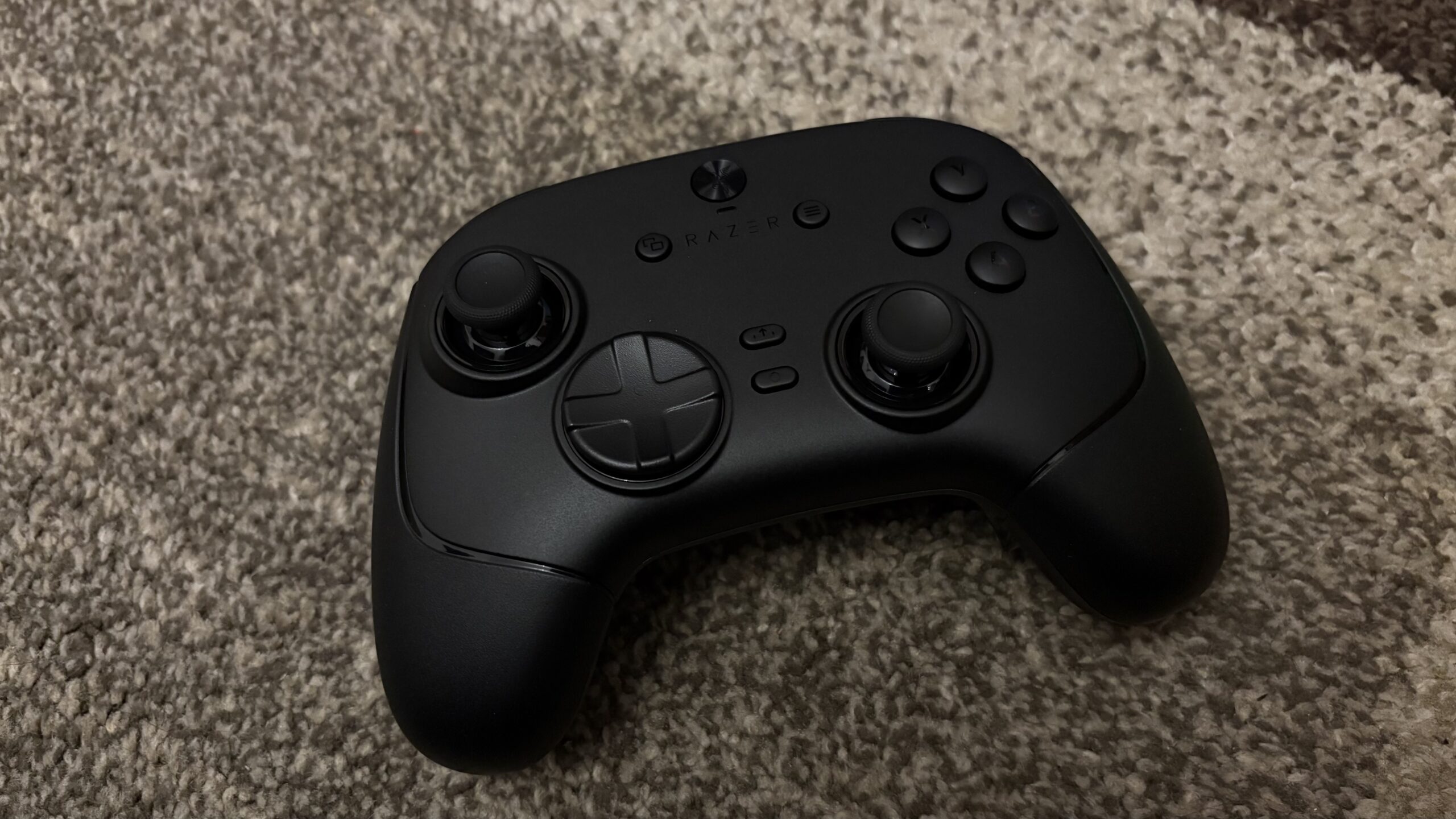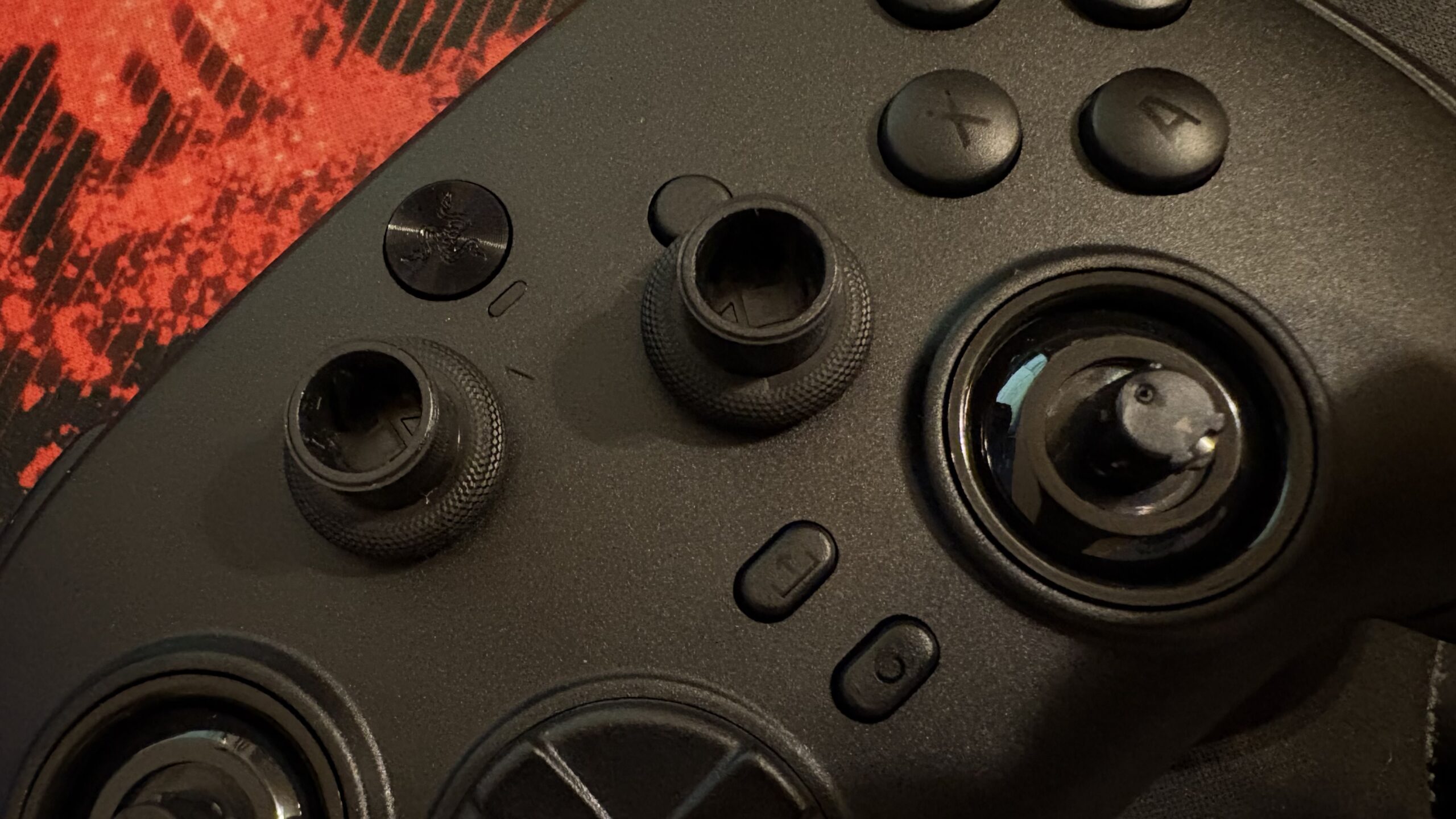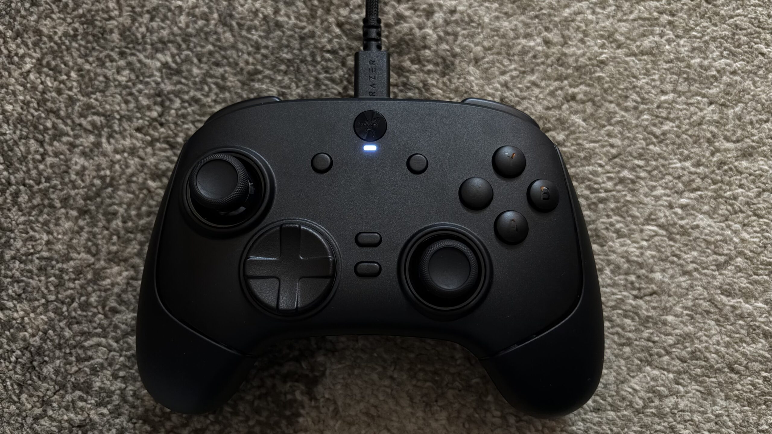 Kontroler posiada w sumie 22 przyciski. Do wyżej wymienionych należy też doliczyć: LT, RT, LB, RB, M1 i M2. Znajdują się one na samym froncie,  a rozdziela je gniazdo USB typu C. Na froncie z kolei poza obiema gałkami i krzyżakiem znajdziemy również charakterystyczne dla Xboxa X, Y, B, A. Jest też przycisk domowy kryjący się pod logo Razera na samej górze, przyciski widoku i menu, klik udostępniania, a pod nim funkcyjny. Pomiędzy logotypem a przyciskiem domowym znajduje się jeszcze dioda mianowana wskaźnikiem statusu.