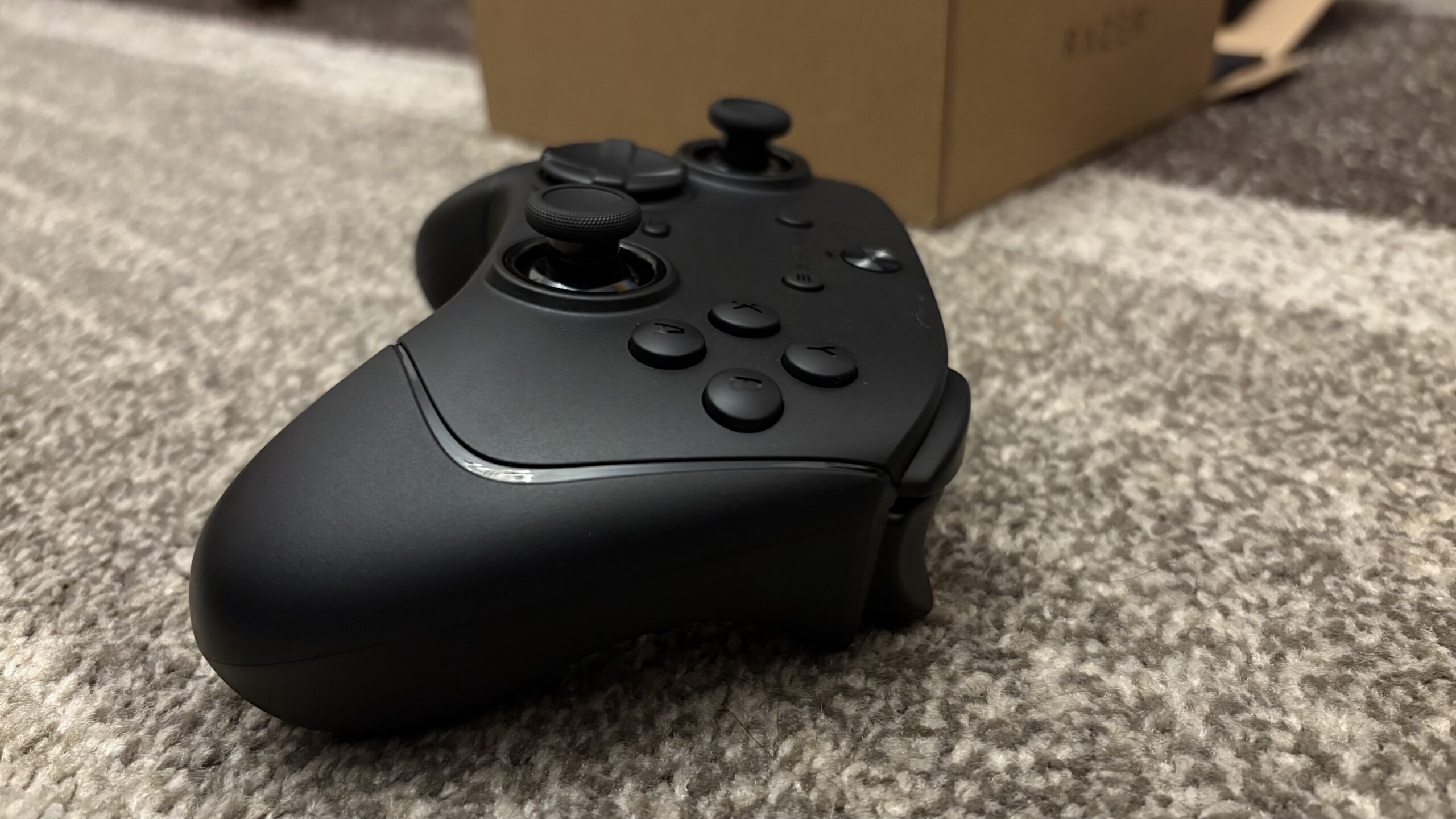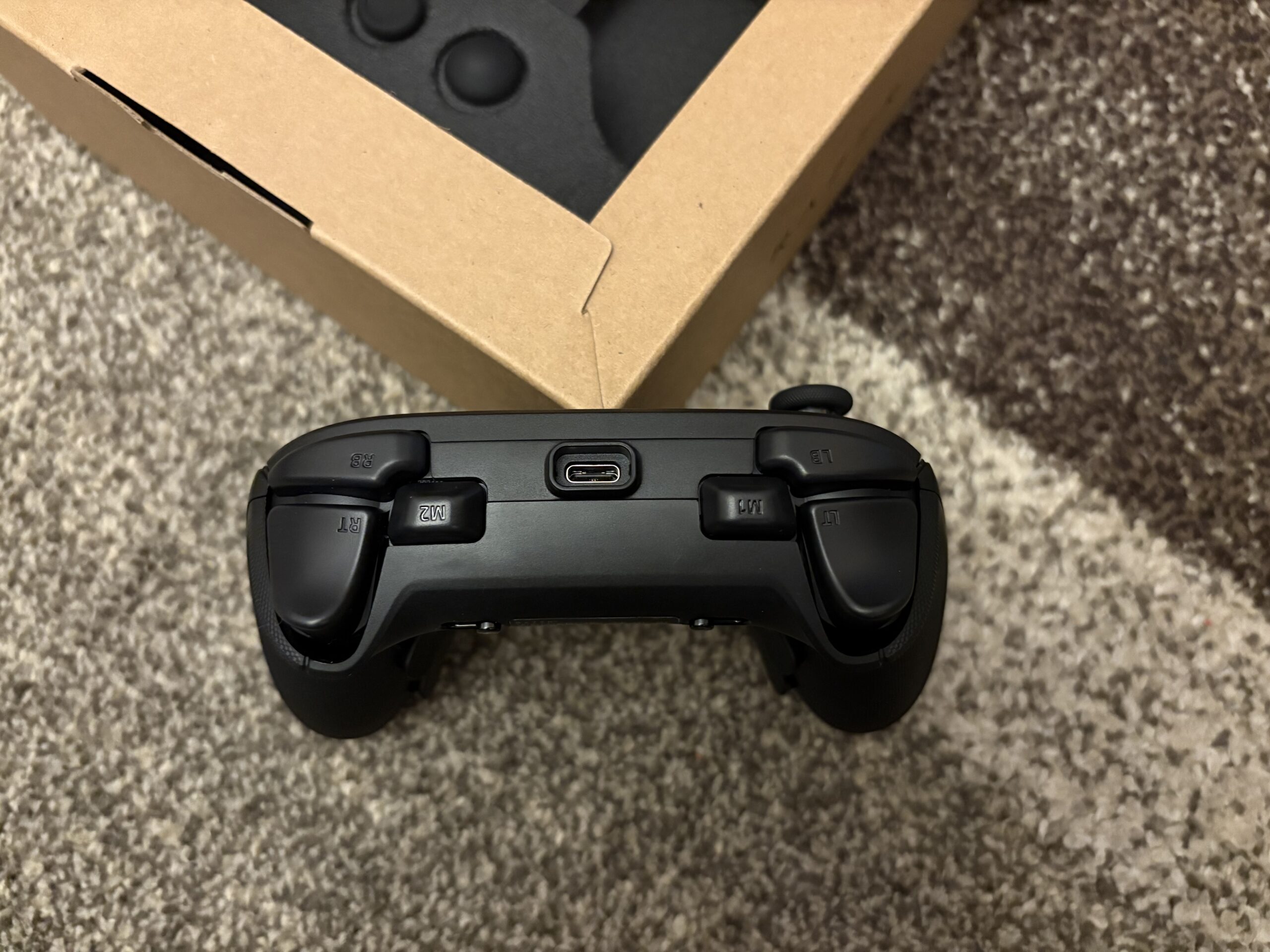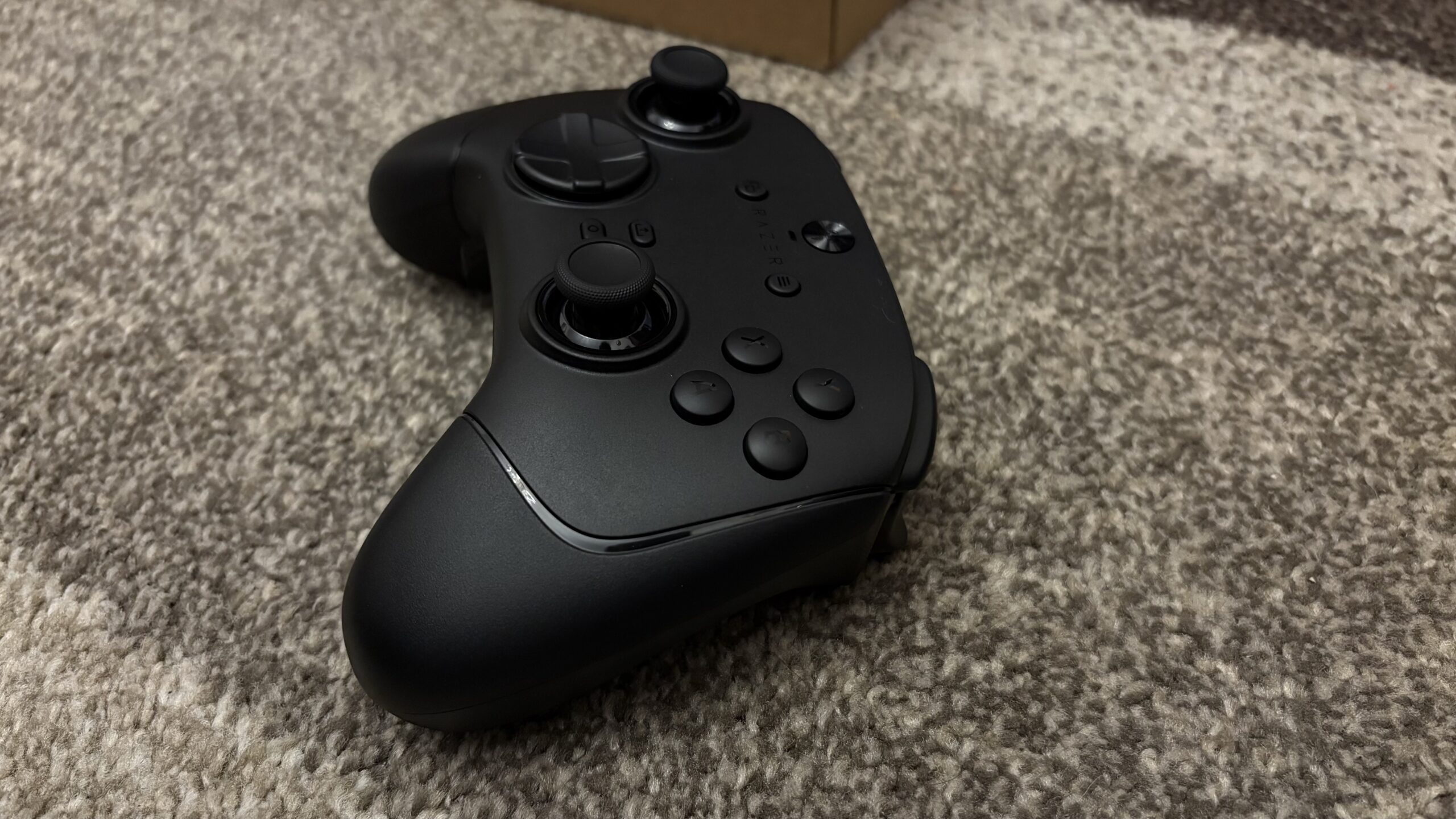 Kontroler posiada w sumie 22 przyciski. Do wyżej wymienionych należy też doliczyć: LT, RT, LB, RB, M1 i M2. Znajdują się one na samym froncie,  a rozdziela je gniazdo USB typu C. Na froncie z kolei poza obiema gałkami i krzyżakiem znajdziemy również charakterystyczne dla Xboxa X, Y, B, A. Jest też przycisk domowy kryjący się pod logo Razera na samej górze, przyciski widoku i menu, klik udostępniania, a pod nim funkcyjny. Pomiędzy logotypem a przyciskiem domowym znajduje się jeszcze dioda mianowana wskaźnikiem statusu.