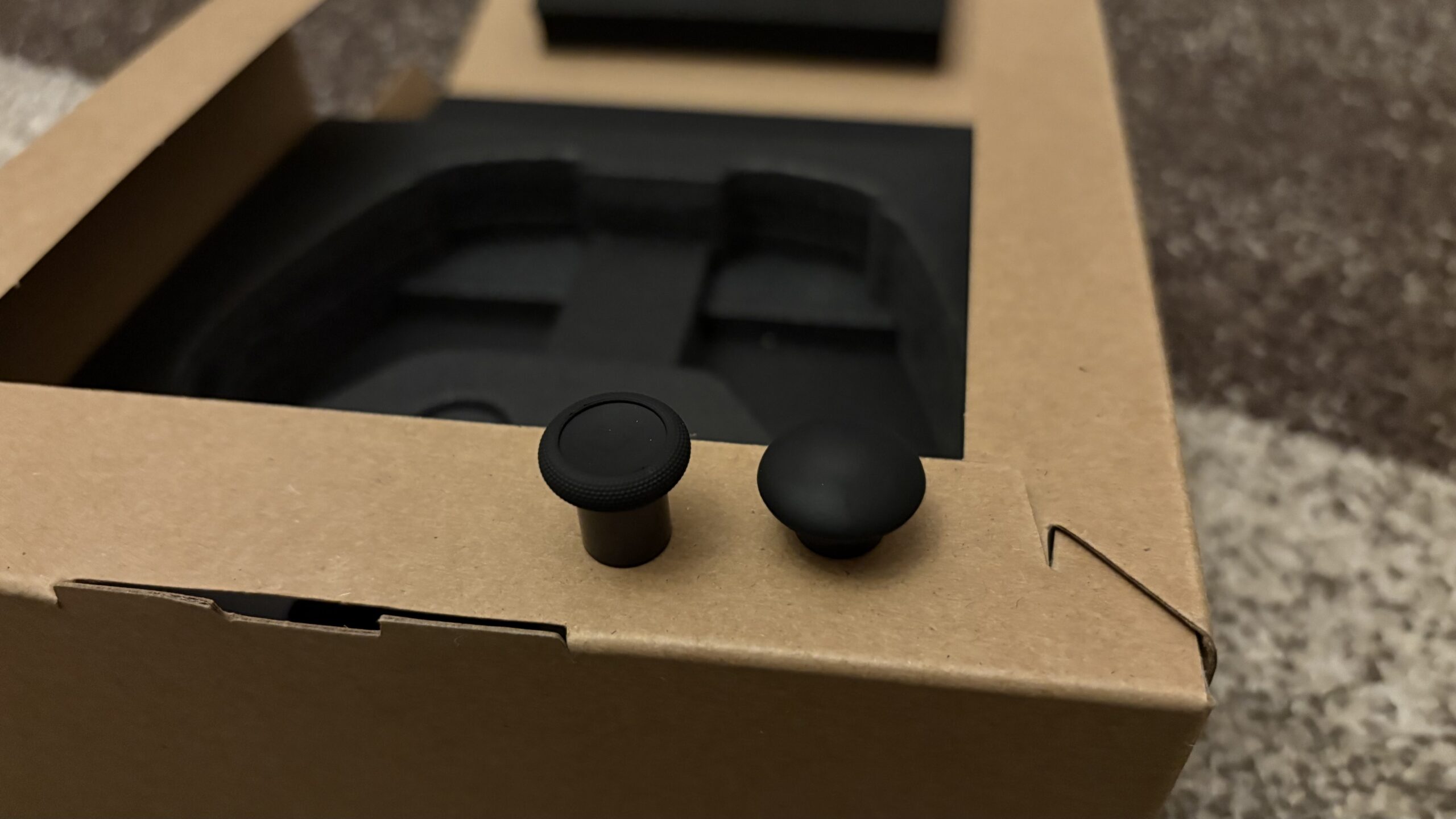 Trudno przejść obojętnie wobec wymiennych nasadek obu gałek. W zestawie otrzymujemy krótszą nakładkę, by zapewnić sobie jeszcze większą szybkość, a także dłuższą nakładkę w celu uzyskania lepszej precyzji. W celu wymiany należy najpierw doprowadzić do odblokowania za pomocą dwóch suwaków umiejscowionych na spodzie, a następnie z wyczuciem pociągnąć do góry za obydwie nasadki. Proces jest bardzo prosty.