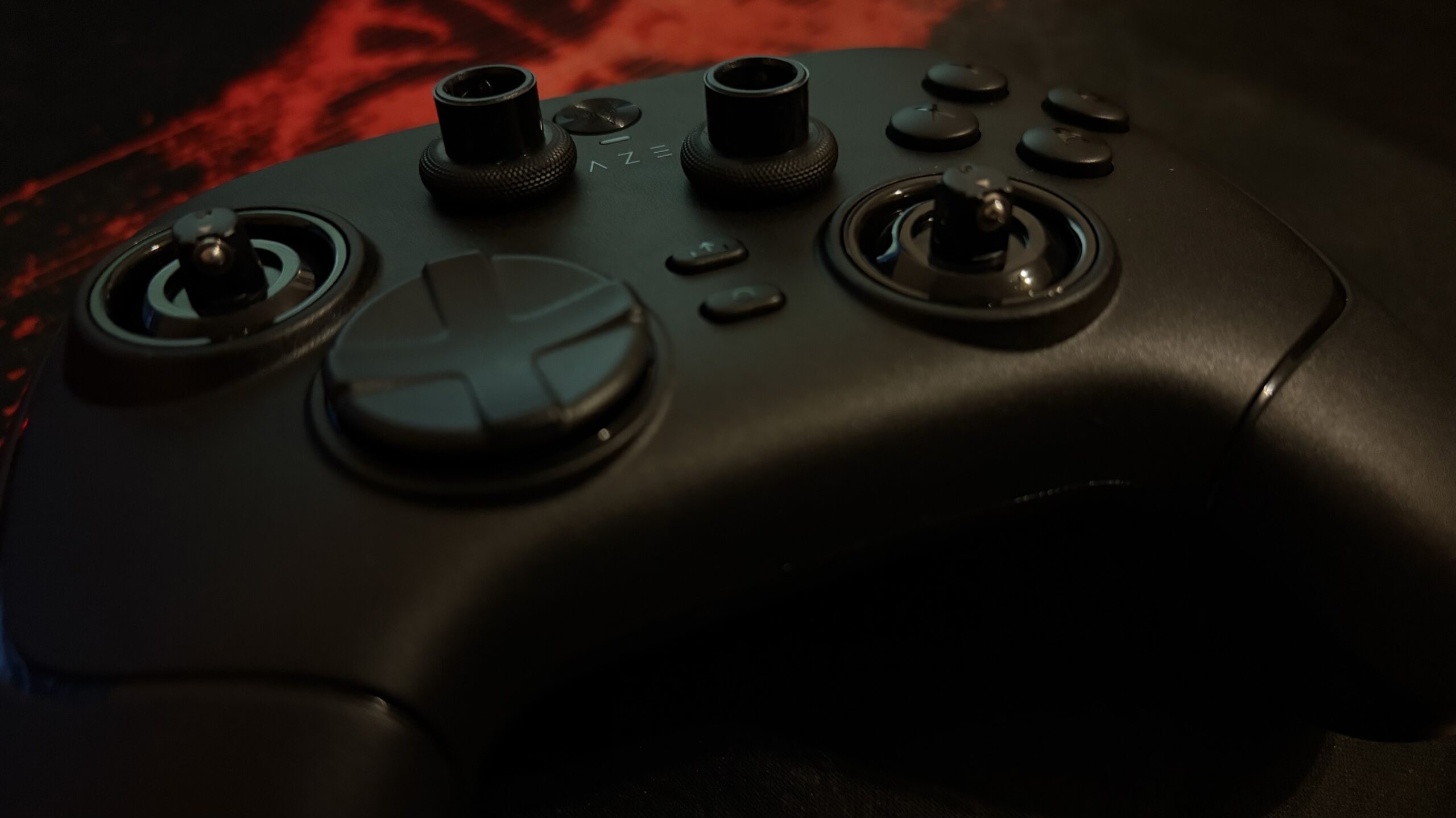 O ile gałki chodzą rzeczywiście niezwykle płynnie i trudno zarzucić im cokolwiek w tej materii, o tyle pozostałe przyciski z góry posiadają minimalny, wyczuwalny opór, co było zamierzeniem samego producenta. „Krzyżak” bardzo fajnie współpracuje z kciukiem i sprawia wrażenie posiadania miękkiego switcha. Pozostałe kliki nie uginają się od razu pod ciężarem palców. Trzeba też jasno zaznaczyć, że kontroler do najcichszych nie należy. Każdy z przycisków wydaje swój odgłos i należy liczyć się z tym, że cicho nie będzie, zwłaszcza w trakcie konkretnych „nawalanek” czy „naparzanek”.