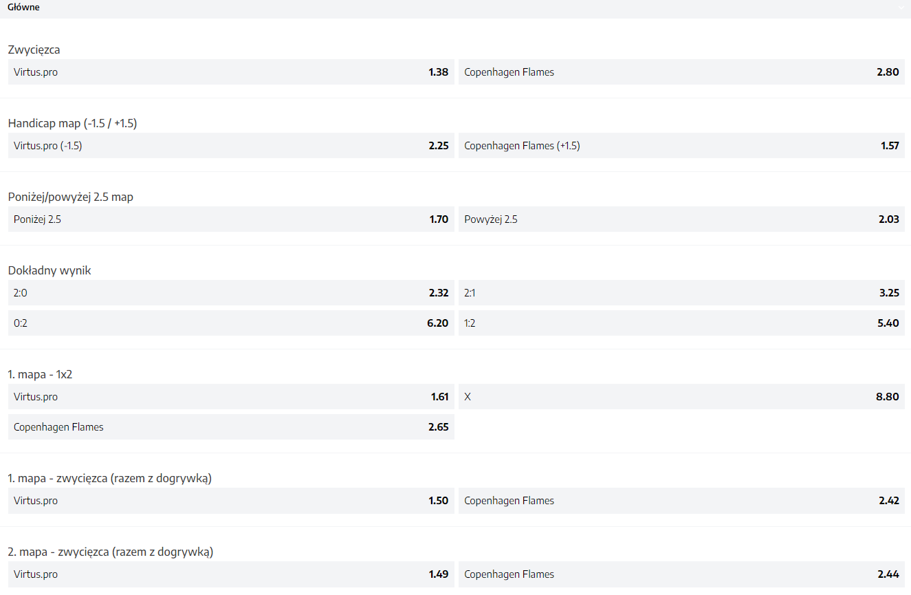 Czwartek rozpoczniemy od starcia pomiędzy Virtus.pro a Copenhagen Flames. Pierwsze akcje na serwerze powinny mieć miejsce o godzinie 12:30. “Niedźwiedzie” stoczą dopiero swój pierwszy pojedynek na polskiej ziemi, podczas gdy Duńczycy mają za sobą świetny występ w fazie Play-In. CF przejechało się po fnatic oraz Ninjas in Pyjamas, co trzeba przyznać – robi wrażenie. Dotychczas w historii obie te drużyny mierzyły się tylko raz i miało to miejsce 7 września ubiegłego roku. Wówczas to VP wygrało 2:0 w Pinnacle Fall Series 1. Od tamtego momentu upłynęło już trochę czasu, a doskonale pamiętamy, że formacja ze Skandynawii zaczęła lepiej grać na przełomie października i listopada podczas PGL Majora w Sztokholmie, zajmując 9-11. miejsce. Copenhagen Flames zdecydowanie lepiej radzi sobie podczas wydarzeń LAN-owych. Jednakże dzisiejsze zawody nie będą należeć do najłatwiejszych, ponieważ Duńczycy zmierzą się z czwartą siłą świata. To drużyna z regionu CIS jest faworytem tego pojedynku, chociaż nie do końca zdają się być o tym przekonani bukmacherzy. Kurs na VP to 1.38, podczas gdy na CF to aż 2.80!