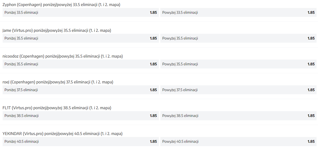 Ostatnim meczem na liście jest ten z angażem FURII i Astralis. Brazylijczycy mają za sobą całkiem udany występ w postaci drugiego miejsca na ESL Challenger February. W finale ekipa z Kraju Kawy uległa Virtus.pro. Z kolei Duńczycy są po Play-Inach, w których górowali nad FURIĄ i BIG. W czystej teorii to ekipa ze Skandynawii powinna wygrać tę konfrontację. Kristian “k0nfig” Wienecke i jego koledzy są na siódmym miejscu w światowym notowaniu HLTV, podczas gdy ekipa z Ameryki Południowej na 16. Indeks na Astralis wynosi 1.53, w momencie gdy na FURIĘ 2.34.