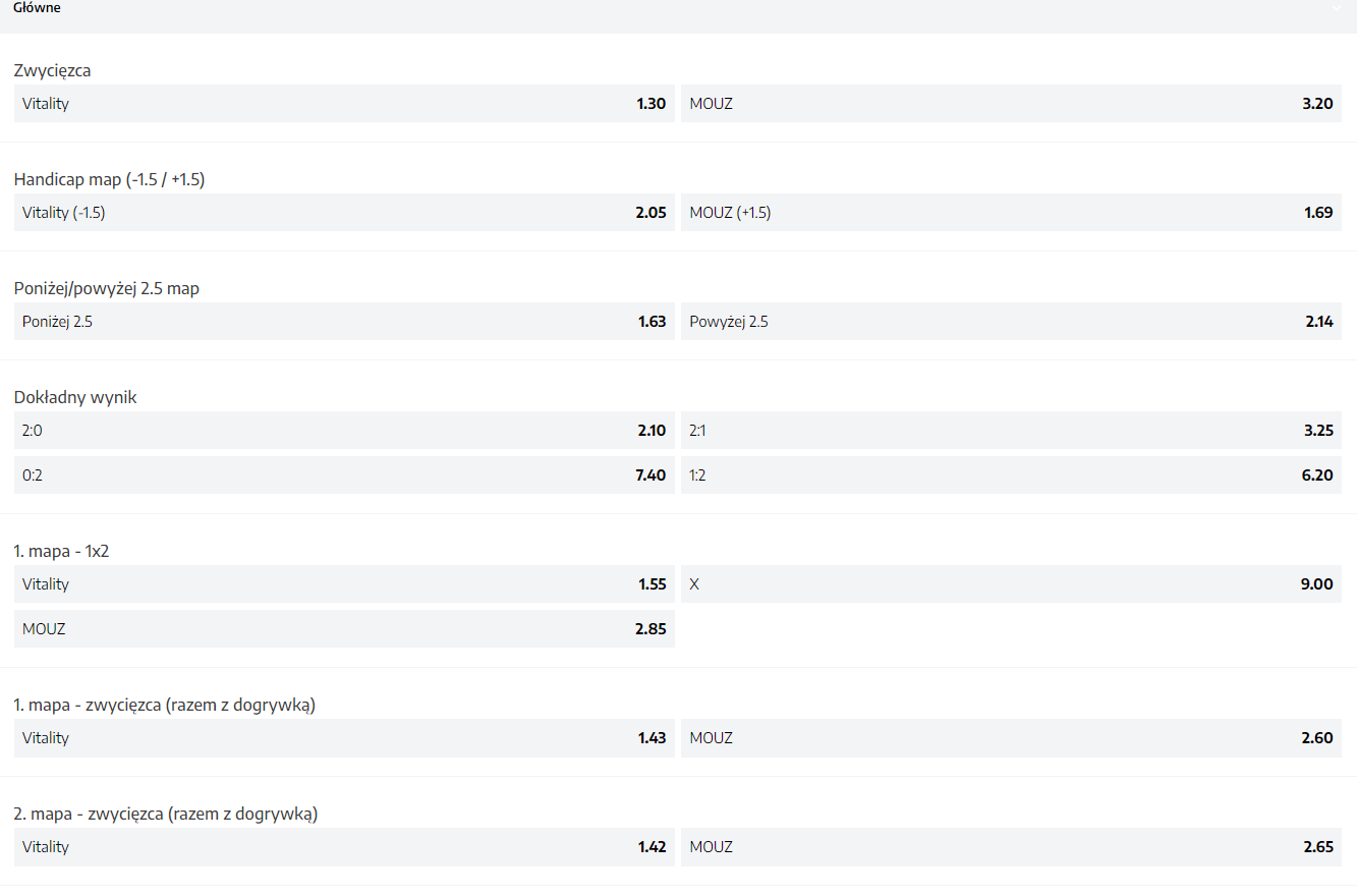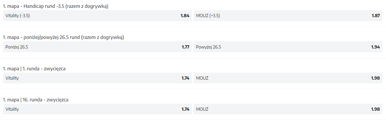 Kolejne dwa starcia ujrzymy o godzinie 16:00. Do akcji wkroczy Team Vitality, który w minionym okienku transferowym przeszedł przez spore zmiany. Do francuskiej organizacji zawitała trójka Duńczyków, z czego dwójka to gracze – Peter “dupreeh” Rasmussen oraz Emil “Magisk” Reif. Trzecim jest trener, Danny “zonic” Sørensen. Na minionej konferencji prasowej jeden z zawodników Vitality powiedział, że nie mają oczekiwań względem tego turnieju. “Myszy” także przeszły przez modyfikacje, w wyniku których na pokładzie pojawili się Nathan “NBK-” Schmitt oraz Ádám “torzsi” Torzsás. Niemiecka organizacja potrzebowała trzech starć, by awansować do głównego turnieju. MOUZ pokonało GODSENT, ale uległo FaZe Clanowi. W decydującej potyczce 33. ekipa świata pewnie pokonała Entropiq. Nie da się ukryć, że ten mecz jest poniekąd jak zestawienia Dawida z Goliatem. W końcu po jednej stronie ujrzymy “Pszczoły”, które są na trzeci miejscu w rankingu HLTV, podczas gdy “Myszy” dopiero na 33. Kurs na Team Vitality wynosi 1.30, podczas gdy na „Myszki” 3.20.