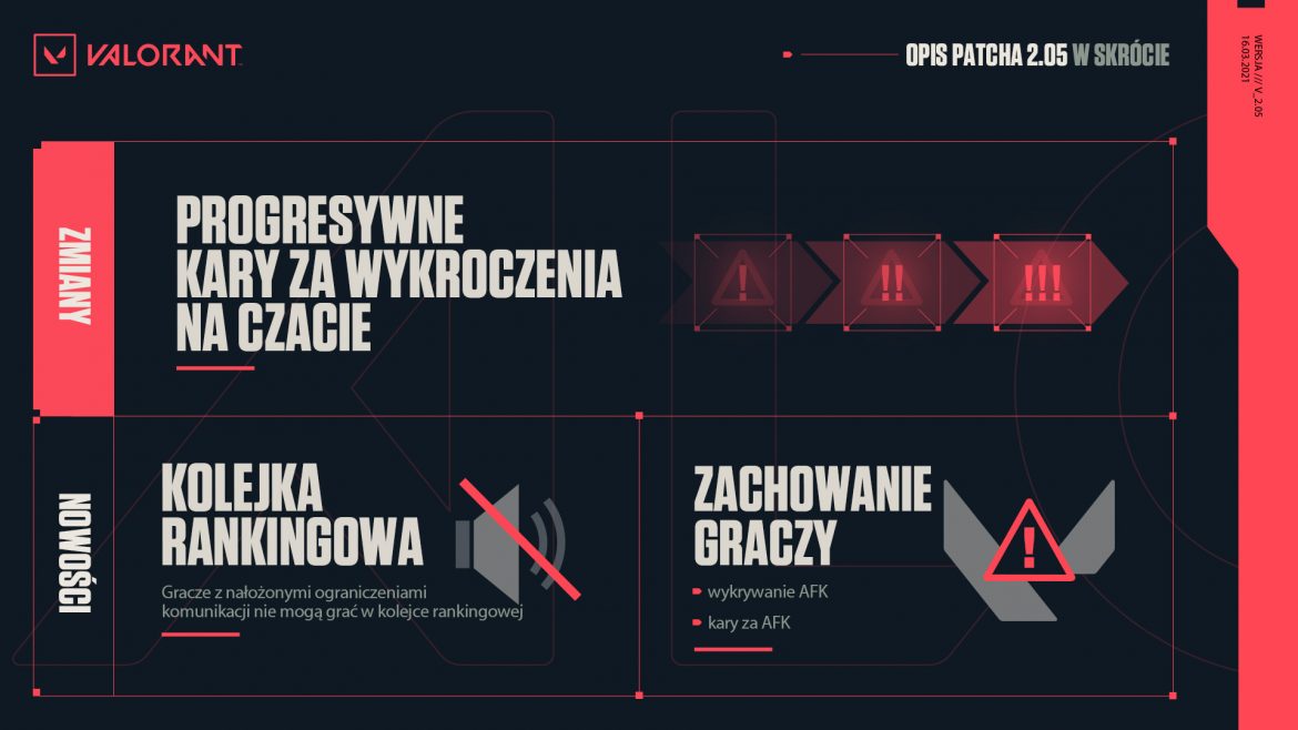 Dnia dzisiejszego zawitała kolejna aktualizacja VALORANT, czyli Patch 2.05. Pojawiły się w niej m.in. zmiany dla dwóch agentów, a także kary za status AFK.